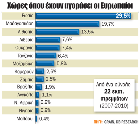 Πρόκειται για χορό δεκάδων δισεκατομμυρίων, στον οποίο συμμετέχουν πολλά γνωστά ονόματα από τον κόσμο των private equities και των hedge funds. Με αποδόσεις έως και 30% από την εκμετάλλευση τους, χωρίς να συμπεριλαμβάνονται οι υπεραξίες της γης που δημιουργούνται, και τη ζήτηση για αγροτικά προϊόντα να πολλαπλασιάζεται από τους νομοθετημένους στόχους για αύξηση της χρήσης των βιοκαυσίμων, κάποιοι μιλούν ήδη για μια νέα παγκόσμια αγροτική επανάσταση, την οποία κάνουν οι αγορές.