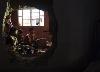 Μαχητές του Ελεύθερου Συριακού Στρατού παίρνουν θέσεις πριν από μια επίθεση εναντίον πιστών του Άσαντ στην πόλη Deir al-Zor στις 11 Ιουλίου. (Khalil Ashawi / Reuters)