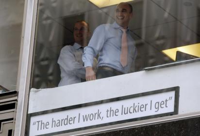 Δωμάτιο με θέα: επιχειρηματίες βλέπουν τις διαδηλώσεις των Αμερικανών «αγανακτισμένων» (δηλαδή το κίνημα Occupy Wall Street) τον Μάιο του 2012. Mike Segar/Reuters