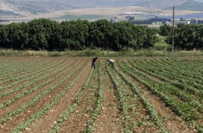 Αγρότες σε καλλιέργεια βάμβακος έξω από την Θήβα. Αυτές οι καλλιέργειες δεν συμφέρουν πλέον… (John Kolesidis / Reuters)