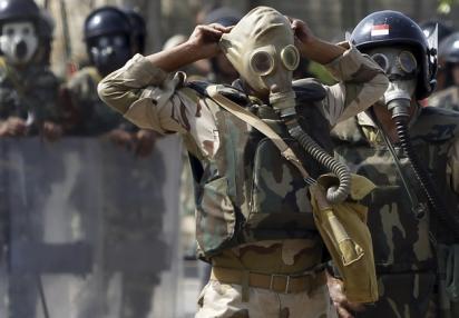 Αιγύπτιοι στρατιώτες φορούν μάσκες αερίου ενόψει διαδηλωτών της Μουσουλμανικής Αδελφότητας στις 8 Ιουλίου 2013. (Amr Abdallah Dalsh / Courtesy Reuters)