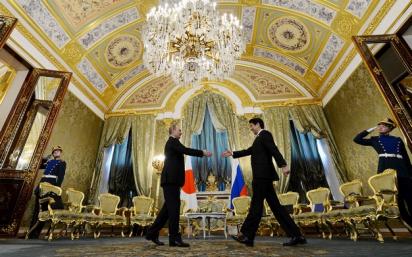 Ο Ρώσος πρόεδρος Βλαντιμίρ Πούτιν συναντά τον Ιάπωνα πρωθυπουργό Σίνζο Άμπε στο Κρεμλίνο, τον Απρίλιο του 2013. (Courtesy Reuters)