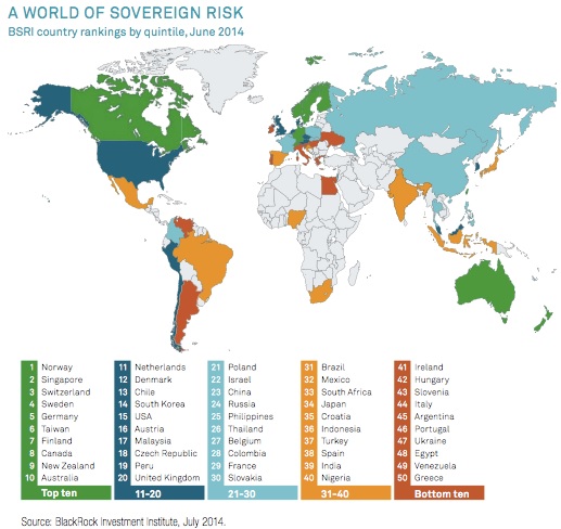 Η Νορβηγία βρίσκεται ξανά στην κορυφή της λίστας, εξαιτίας του ιδιαίτερα χαμηλού επιπέδου χρέους, ενός θεσμικού πλαισίου το οποίο θεωρείται ότι είναι πολύ ισχυρό και των πολύ περιορισμένων κινδύνων από εξωτερικούς και χρηματοπιστωτικούς κραδασμούς. Η Γερμανία, η Ολλανδία και η Φινλανδία βρίσκονται στην πρώτη 10άδα, όπου η Πορτογαλία, η Ιρλανδία, η Ιταλία και η Ελλάδα είναι μεταξύ των χειρότερων. Η Ελλάδα βρίσκεται επίσης στο τέλος της λίστας, αν και αυτή η κατάταξη έγινε τον Ιούνιο, επομένως ομολογουμένως η Αργεντινή μπορεί να έχει βρεθεί στην πρώτη θέση τον Ιούλιο.