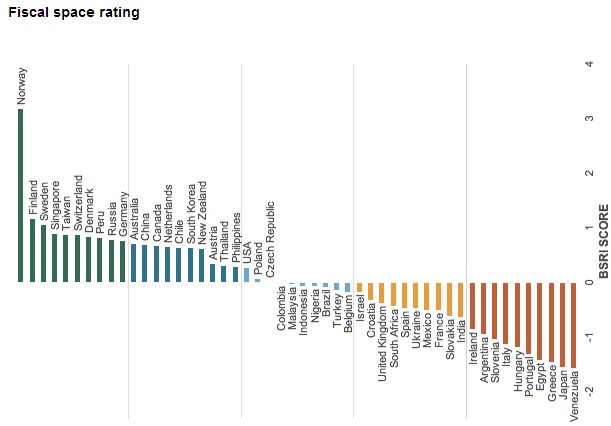 Την κατηγορία του FiscalSpace (40% στάθμιση), που προσπαθεί να αξιολογήσει εάν η δημοσιονομική δυναμική μιας συγκεκριμένης χώρας βρίσκεται σε βιώσιμο μονοπάτι.