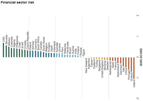 Την κατηγορία Financial Sector Health (στάθμιση 10%), αξιολογώντας τον βαθμό στον οποίο ο χρηματοπιστωτικός κλάδος μιας χώρα αποτελεί απειλή για την πιστοληπτική τη ικανότητα, εάν ο κλάδος επρόκειτο να κρατικοποιηθεί, και εκτιμά την πιθανότητα ο κλάδος να απαιτήσει κρατικοποίηση.