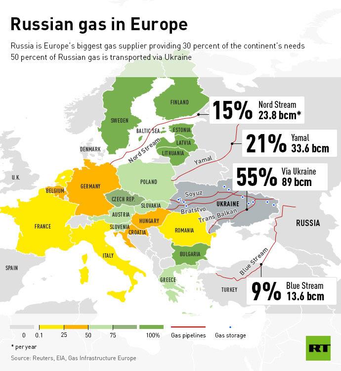 Έχει ενδιαφέρον η πληροφορία, και μάλιστα αρκετά ελεγμένη, ότι το 2014 η Ρωσική εταιρεία Gazprom που είναι από τους βασικούς προμηθευτές φυσικού αερίου της Ευρώπης αύξησε τις εξαγωγές στο επίπεδο ρεκόρ των 161.5 BCM’ s, ποσό στο οποίο συμπεριλαμβάνονται 26.7BCM’ s παραδόσεις στην Τουρκία (με την Τουρκία να καταναλώνει περί τα 45 BCMαερίου τον χρόνο). Να σημειώσουμε ότι σήμερα η Gazprom καλύπτει περίπου το 1/3 της Ευρωπαϊκής κατανάλωσης αερίου που ισοδυναμεί με το 50% των συνολικών εισαγωγών της Ευρωπαϊκής Ένωσης. Οι ποσότητες αυτές εξάγονται μέσα από έξι βασικούς αγωγούς ( Nord Stream, Yamal - Europe 2, Soyuz,Minsk- Vilnius, Dzhubga- Lazarevskoye, Trans Balkan και Blue Stream).