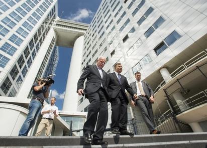 Ο υπουργός Εξωτερικών της Παλαιστίνης, Riad al-Malki, αποχωρεί από το Διεθνές Ποινικό Δικαστήριο, τον Αύγουστο του 2014. (Toussaint Kluiters / Courtesy Reuters)