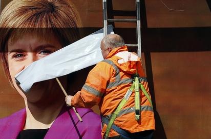Μια προεκλογική αφίσα του Σκωτσέζικου Εθνικού Κόμματος που απεικονίζει την αρχηγό του, Nicola Sturgeon, στην Σκωτία, στις 4 Μαΐου του 2015. Cathal McNaughton / REUTERS