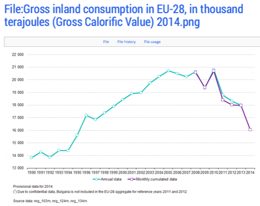 Interestingly, the EU gas consumption has dropped since 2010. In comparison to 2013, the EU’s natural gas consumption dropped by 10,7 percent to 16,046 thousand terajoules. Besides gas imports via pipelines, the European Union imported 14 percent of its gas as LNG in 2013 coming from Qatar, Algeria, Nigeria and others. Also more expensive LNG imports to the European Union decreased by 29.1 percent in 2013 comparing with 2012. However, Eurogas, an NGO based in Europe, forecasts a 7 percent increase of natural gas demand in the EU in 2015 compared to 2014.Taking into account the EU’s energy targets such as energy security and reduction of CO2 emissions, natural gas will play an important role in the European market, because the blue fuel is less pollutant than coal and is flexible to be used as back up for fluctuating renewables. The gas demand in Europe depends massively on the weather conditions. Considering the energy security issue, the EU’s gas imports from non-EU countries will increase, because the gas production of the European countries is in decline. Since the most competitive gas comes from Russia, Europe’s energy security might be undermined, if the EU relied predominantly on Russia’s supplies.