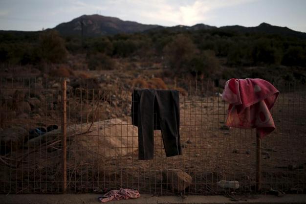 Ένα παντελόνι και μια παιδική κουβέρτα σε έναν φράκτη δίπλα σε μια παραλία όπου πρόσφυγες και μετανάστες έφτασαν με λέμβους, στο νησί της Λέσβου, στις 14 Σεπτεμβρίου 2015. ALKIS KONSTANTINIDIS / REUTERS
