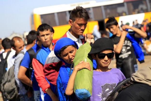 Μετανάστες στην ουρά για να επιβιβαστούν σε ένα λεωφορείο αφότου πέρασαν τα σύνορα από την Σερβία κοντά στο Röszke, στην Ουγγαρία, στις 14 Σεπτεμβρίου 2015. BERNADETT SZABO / REUTERS